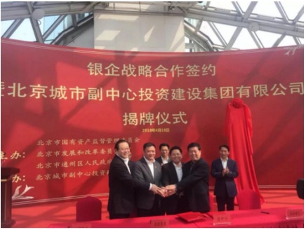4月18日,“银企战略合作签约暨北京城市副中心投资建设集团有限公司揭牌仪式”,在奥林匹克多功能演播塔举行。揭牌仪式上,北投集团与国家开发银行等多家银行签订战略合作协议,授信金额高达4600亿元。