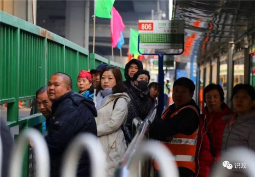 每天都有众多乘客在大北窑公交场站乘车