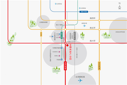 金隅高新产业园项目位于北京市大兴区黄村大庄东,南六环与京开高速交汇处,地处北京电子商务中心区,北依国家新媒体产业基地,南临首都新机场。