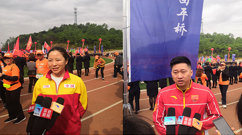 (活动现场,奥运会竞走冠军王丽萍、王镇接受采访)