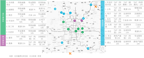 各商务区及商务园区主要需求行业
