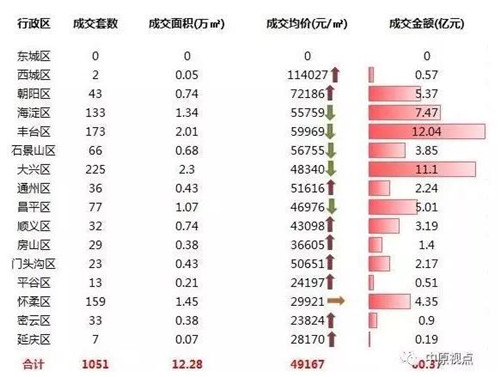 上周成交价格达到5万元/平方米的区域有7个:西城区、朝阳区、海淀区、丰台区、石景山区、通州区、门头沟区。环比前一周增加2个区域。